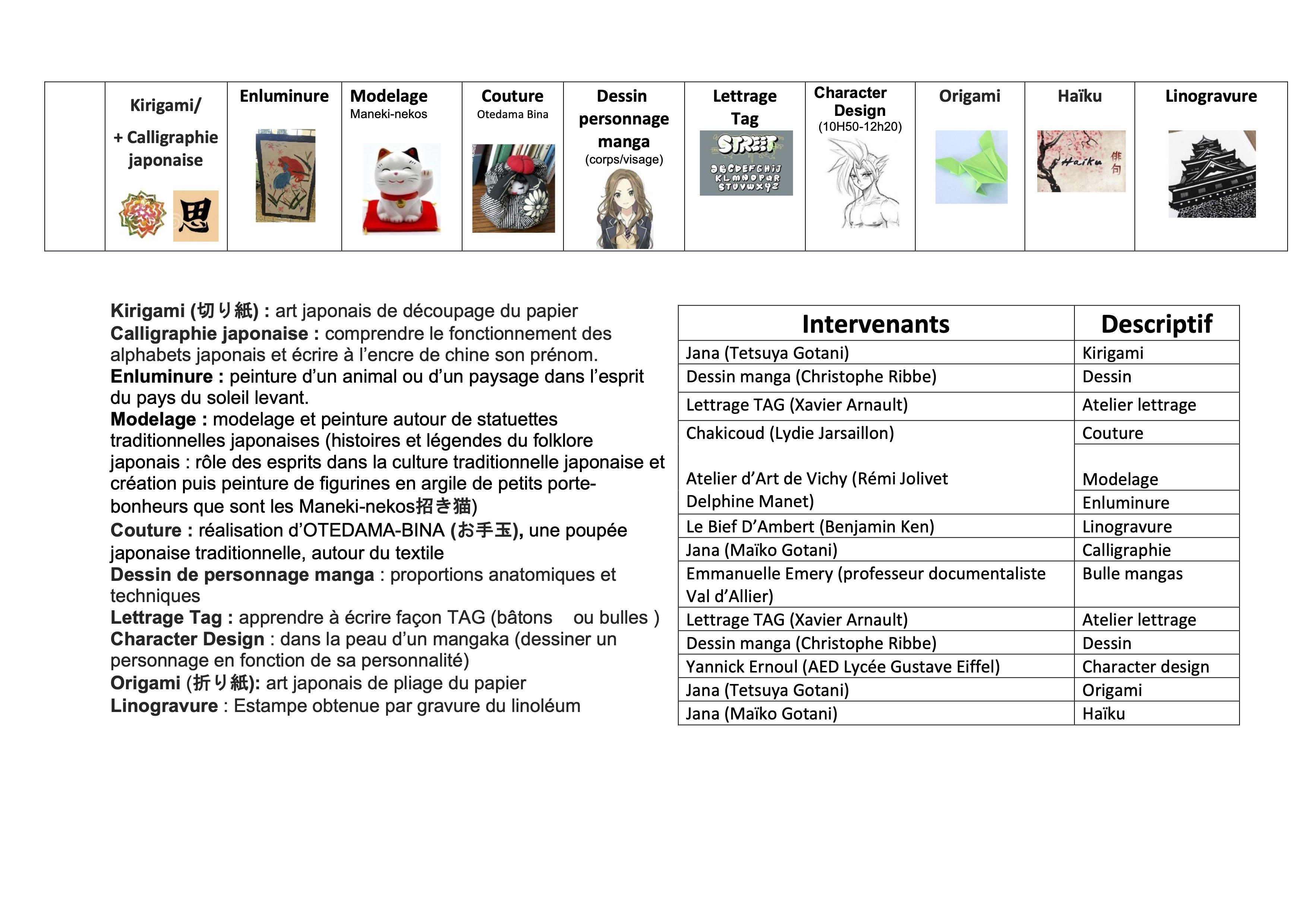 Avec le collège de Gannat, Jules Ferry Vichy, MCW Cusset, Bellenaves et les LP de Gannat et Varennes ! Une édition qui a tenu toutes ses promesses sur le thème du manga et des arts asiatiques.